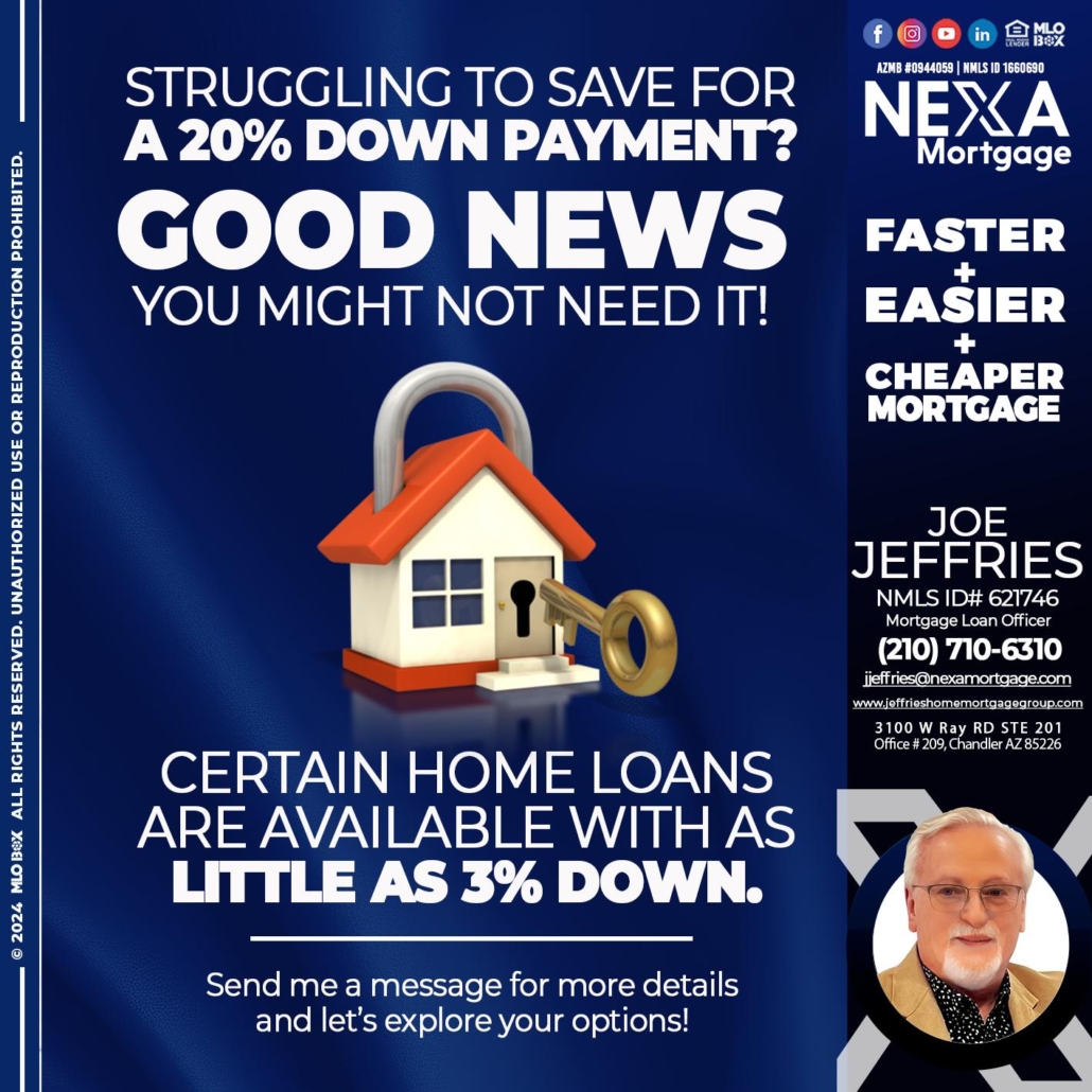 Hi, my name is Joe Jeffries. I’m a Loan Officer with NEXA Mortgage, offering personalized mortgage solutions, fast customized quotes, great rates and service with integrity.